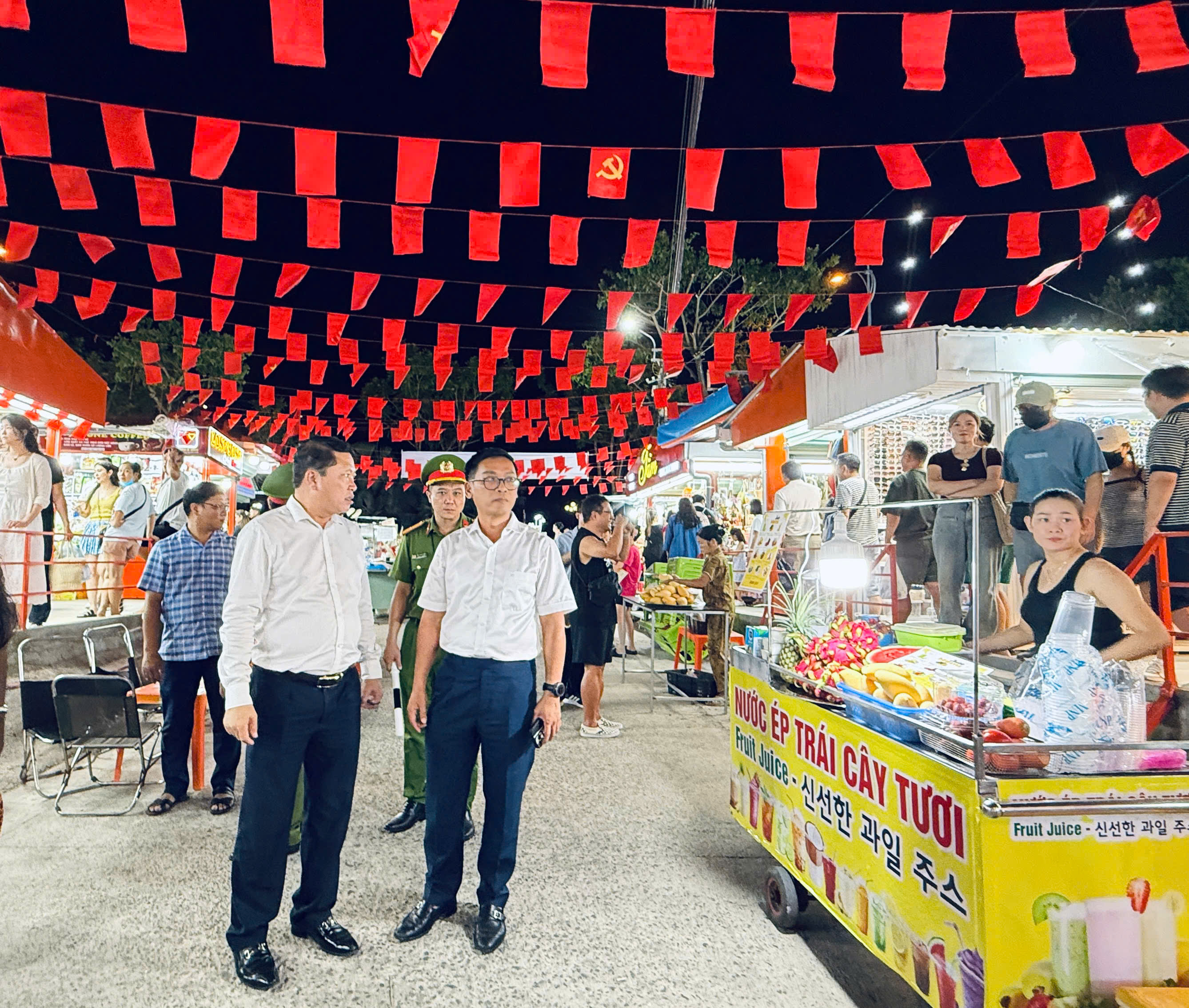 Tối 22-8, lãnh đạo phường An Hải gồm các ông: Phùng Phú Phong - Bí thư Đảng ủy; Hoàng Công Thanh - Phó Bí thư Đảng ủy, Chủ tịch UBND phường đã trực tiếp đi kiểm tra tình hình thực tế tại Chợ đêm Sơn Trà. Cùng đi có lãnh đạo Trung tâm cung ứng dịch vụ sự nghiệp công phường An Hải.