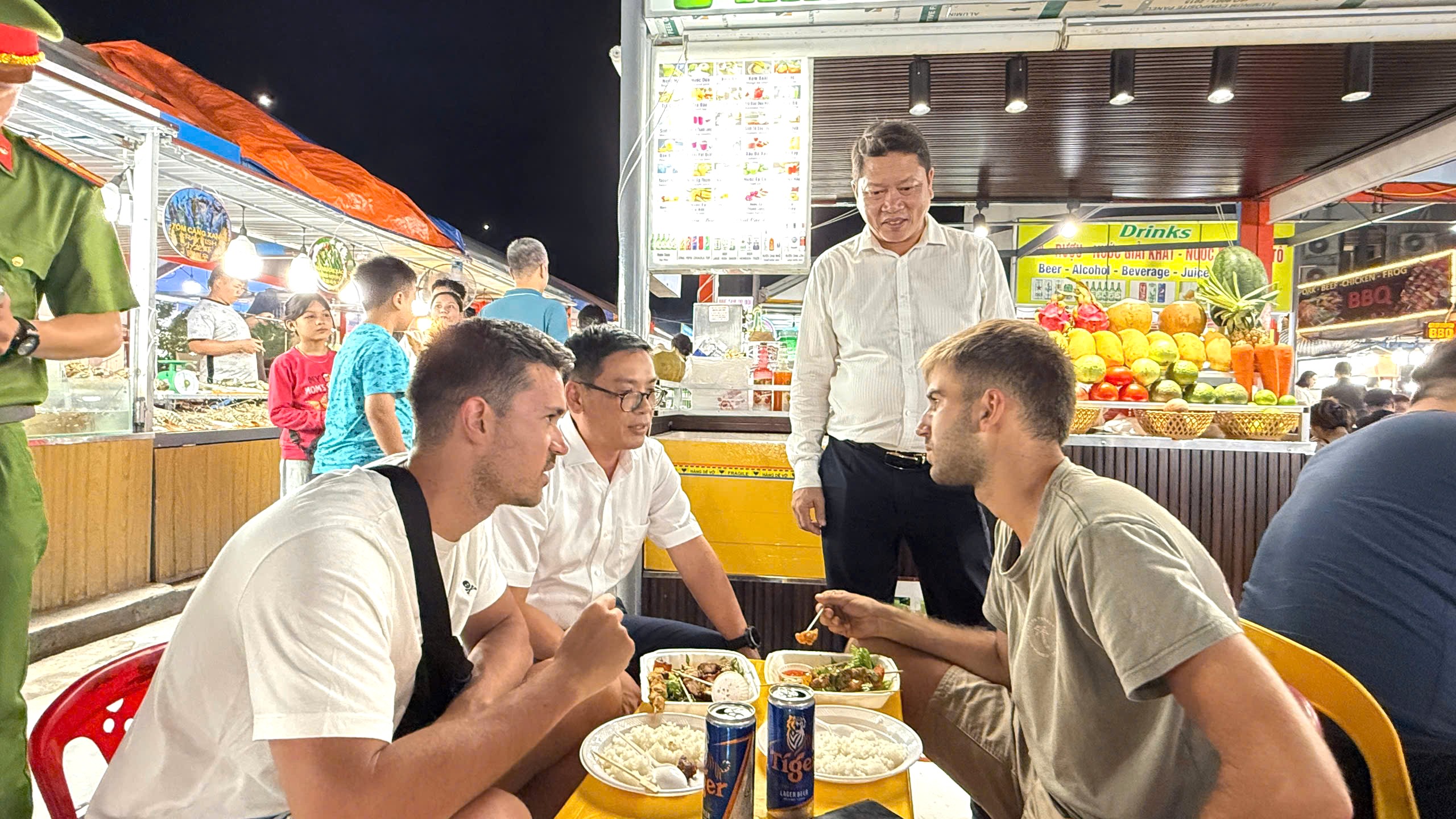 ​​​​​​​Trao đổi với du khách về những trải nghiệm tại Chợ đêm Sơn Trà