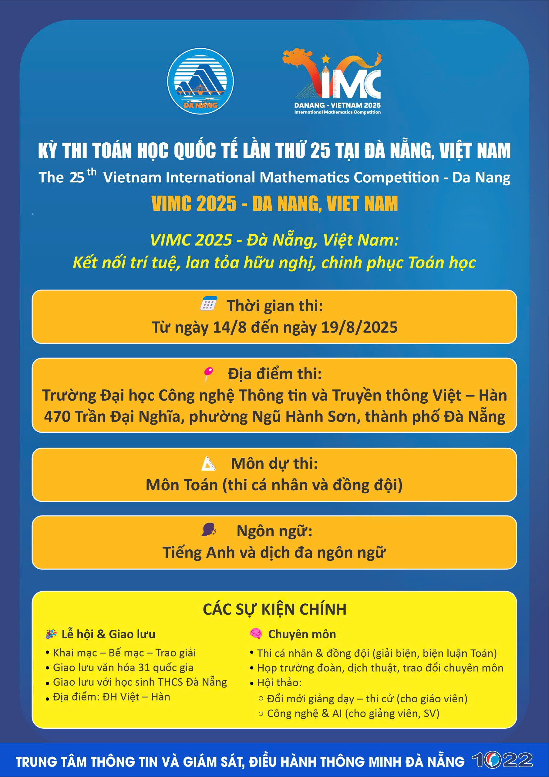 Đây là lần đầu tiên thành phố Đà Nẵng đăng cai tổ chức Kỳ thi Toán quốc tế VIMC dành cho học sinh giỏi Toán đến từ hơn 40 quốc gia và vùng lãnh thổ trên toàn thế giới. Bên cạnh đoàn chủ nhà Việt Nam, kỳ thi có sự tham gia của 30 quốc gia và vùng lãnh thổ; trong đó dự kiến có 526 thí sinh dự thi, 181 giáo viên, 100 khách mời quốc tế.