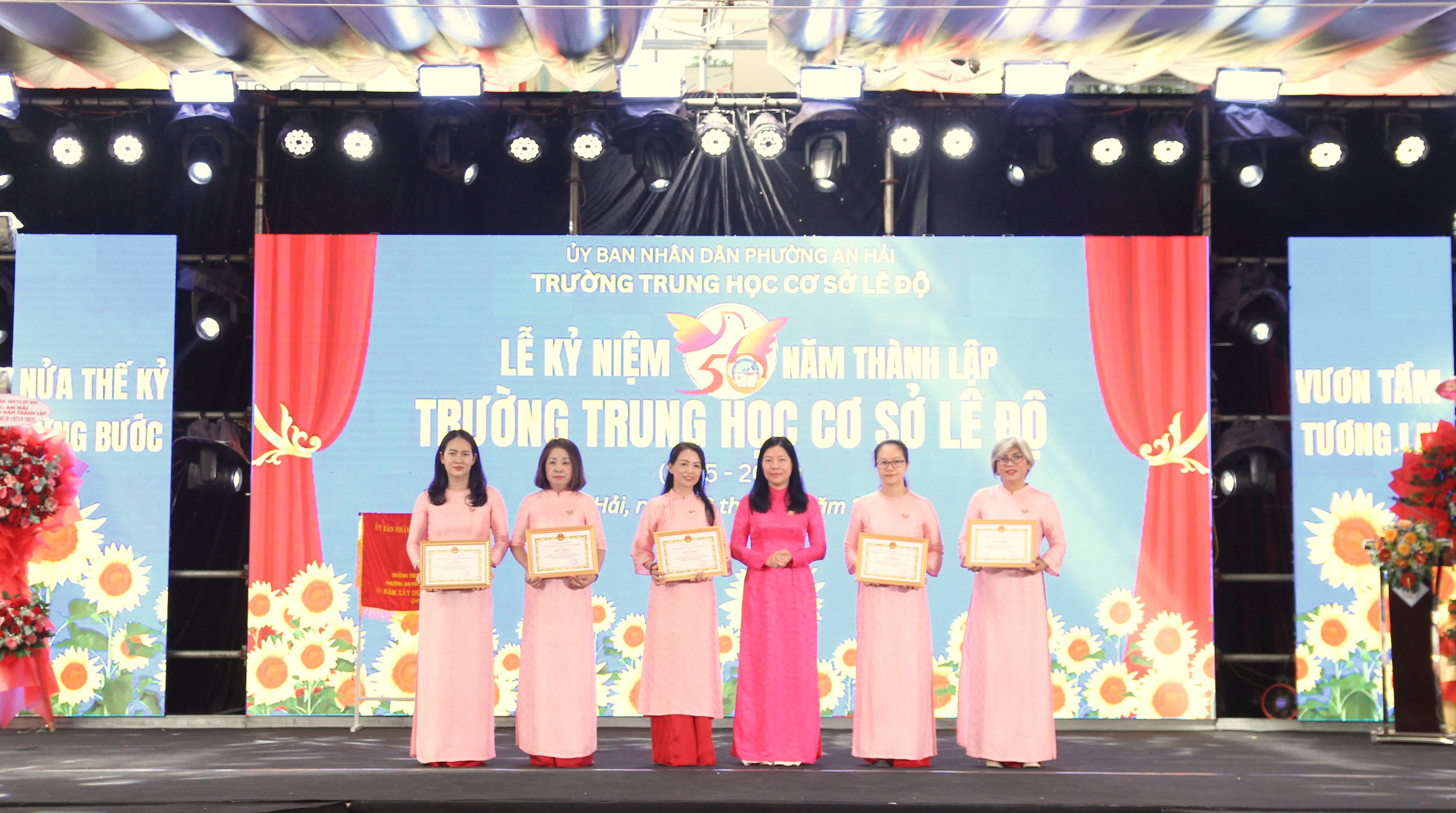 Tại Lễ Kỷ niệm, trường THCS Lê Độ vinh dự được nhận Cờ thi đua của UBND thành phố Đà Nẵng tặng về thành tích 50 năm xây dựng và phát triển. Nhiều tập thể, cá nhân có thành tích và đóng góp trong quá trình xây dựng, phát triển nhà trường cũng đã được Giám đốc Sở Giáo dục và Đào tạo, Chủ tịch UBND phường An Hải tặng giấy khen.