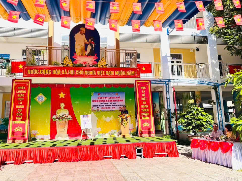 Phát biểu với toàn thể học sinh, thầy Võ Minh Khánh - Phó Hiệu trưởng nhà trường ân cần nhắc nhở các em giữ gìn tác phong, nề nếp và nỗ lực hơn nữa trong học tập cũng như rèn luyện. Buổi sinh hoạt đầu tuần không chỉ khơi gợi tình yêu sách, khát vọng vươn lên mà còn góp phần bồi đắp tinh thần đoàn kết, xây dựng tập thể vững mạnh.