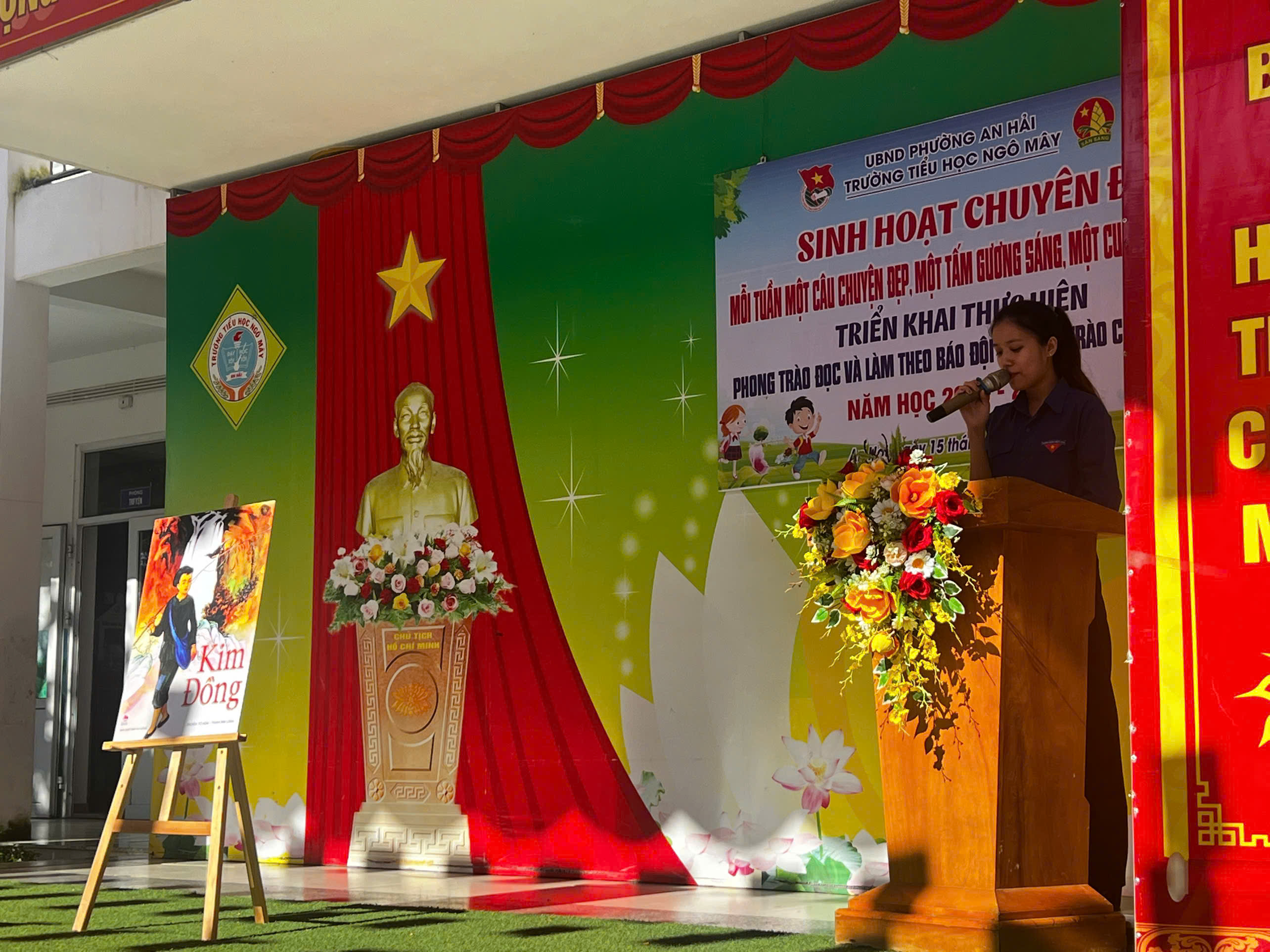 Sáng 15/9/2025, Liên đội Trường Tiểu học Ngô Mây tổ chức buổi sinh hoạt chuyên đề “Mỗi tuần một câu chuyện đẹp, một tấm gương sáng, một cuốn sách hay”, kết hợp triển khai phong trào “Đọc và làm theo báo Đội” và “Chi đội 3 tốt” trong năm học 2025 – 2026. Đây là hoạt động ý nghĩa, giúp học sinh khởi động tuần mới với tinh thần hứng khởi, giàu động lực.