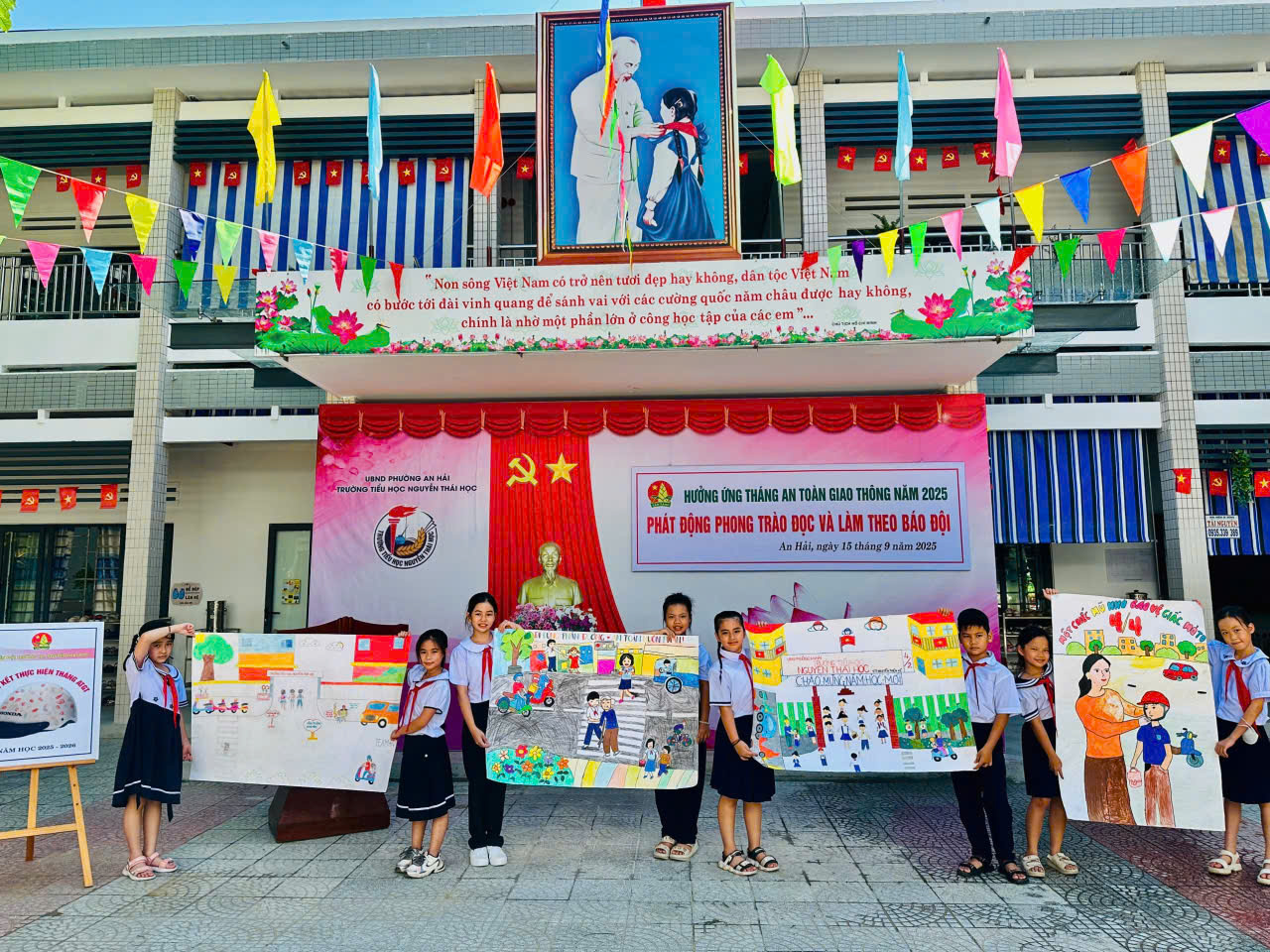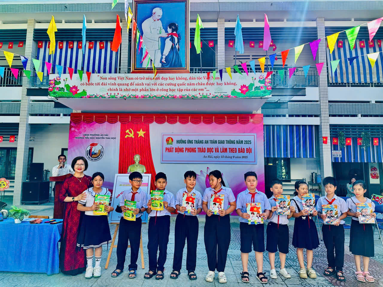 Thực hiện Chương trình công tác Đội và phong trào thiếu nhi năm học 2025 – 2026, đồng thời hưởng ứng Tháng An toàn giao thông năm 2025, sáng ngày 15/9, Liên đội Trường Tiểu học Nguyễn Thái Học phối hợp cùng Chi đoàn nhà trường tổ chức buổi chào cờ đầu tuần với nhiều hoạt động thiết thực, bổ ích.