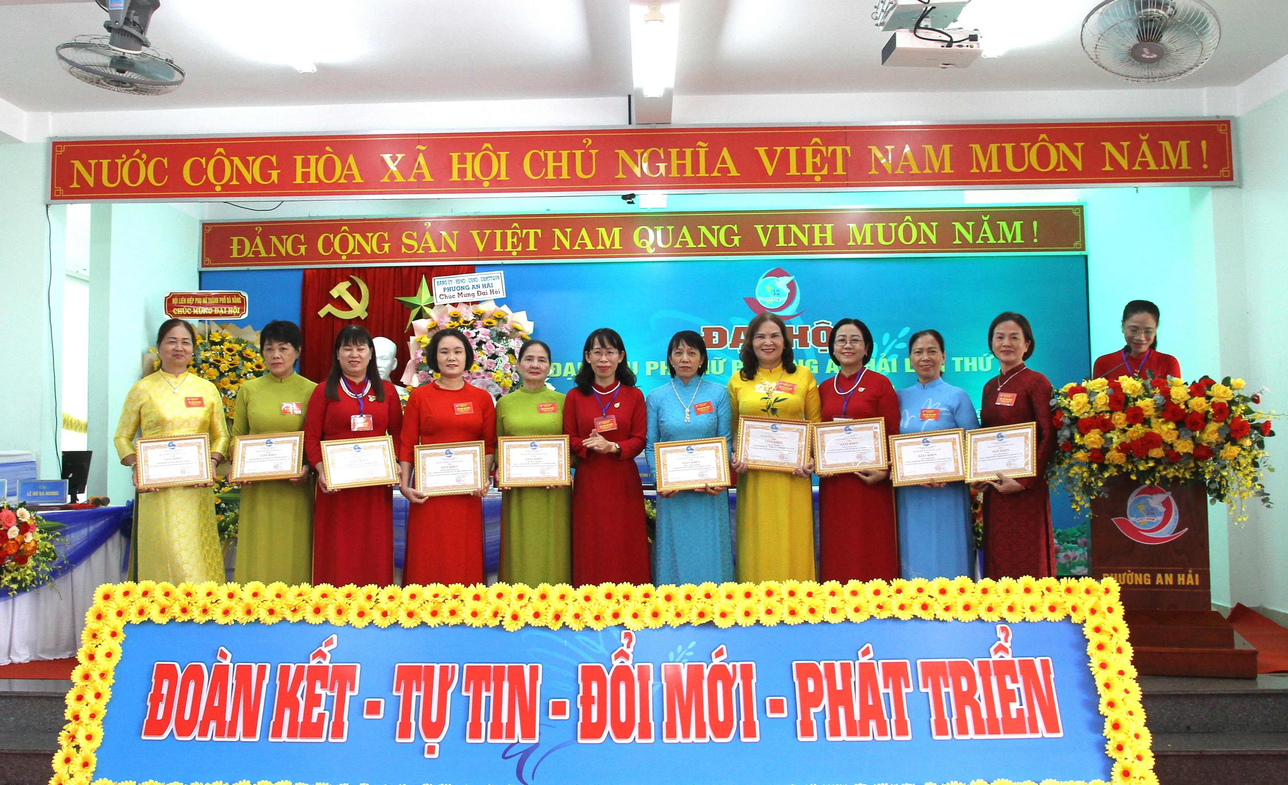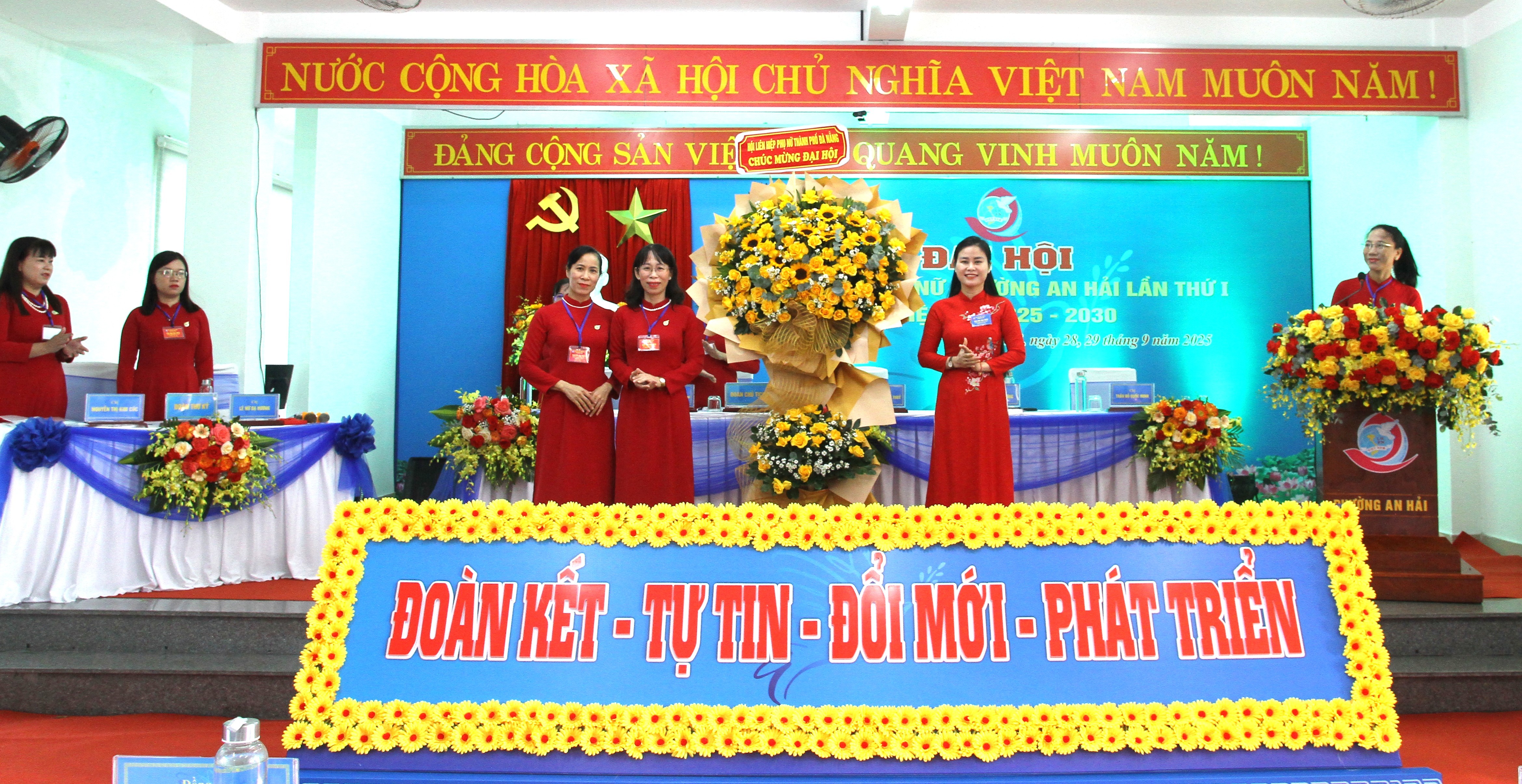 Lãnh đạo Hội LHPN thành phố và lãnh đạo phường An Hải tặng hoa chúc mừng Đại hội