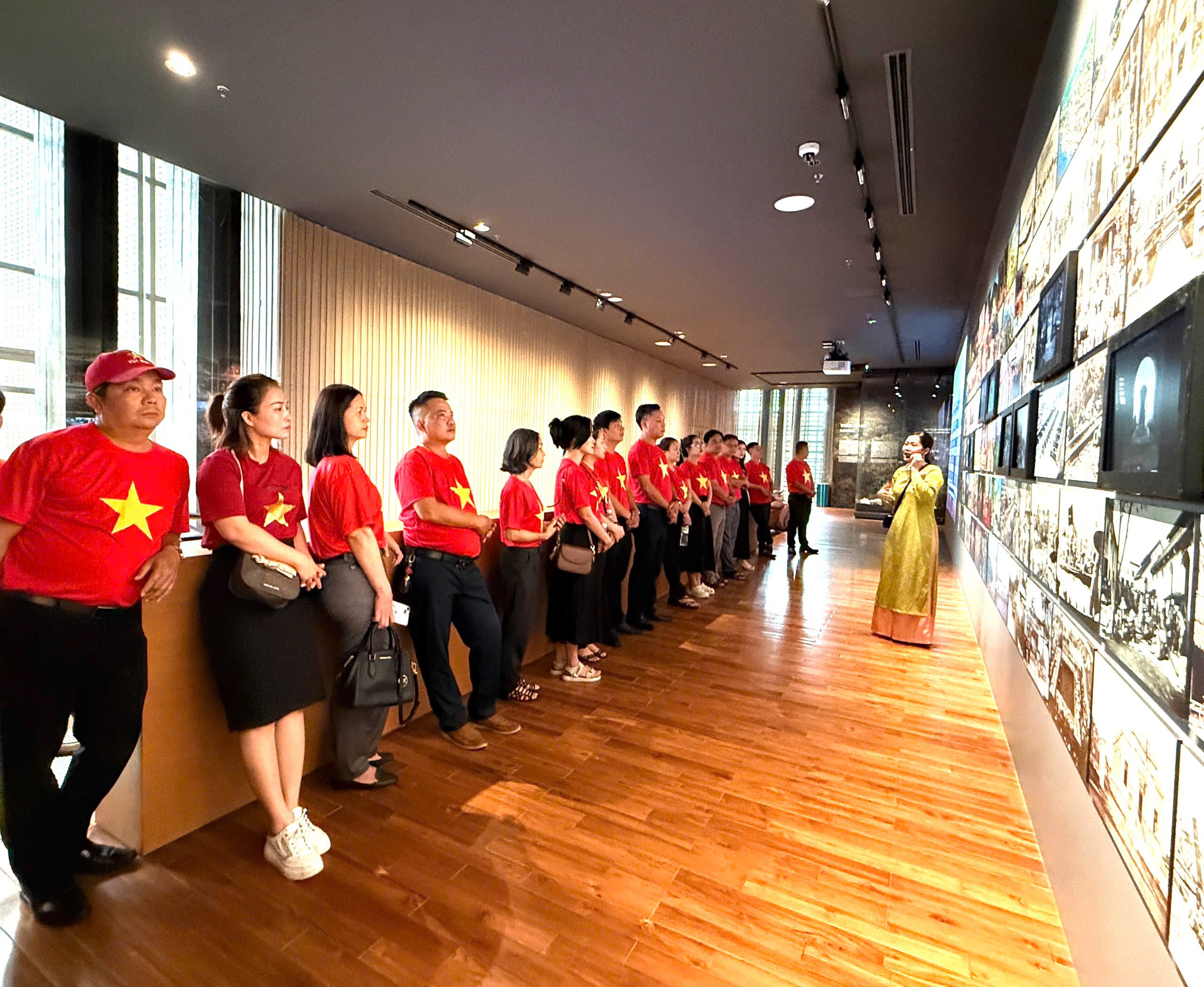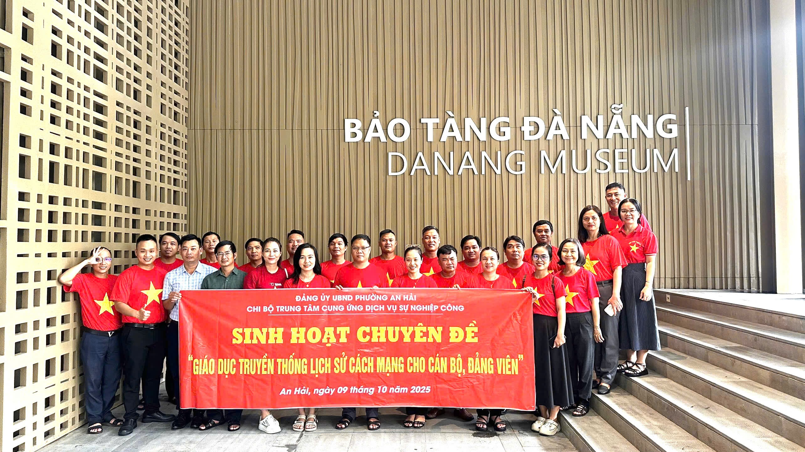 Đảng viên, quần chúng ưu tú thuộc Chi bộ Trung tâm cung ứng dịch vụ sự nghiệp công phường chụp hình lưu niệm tại Bảo tàng Đà Nẵng