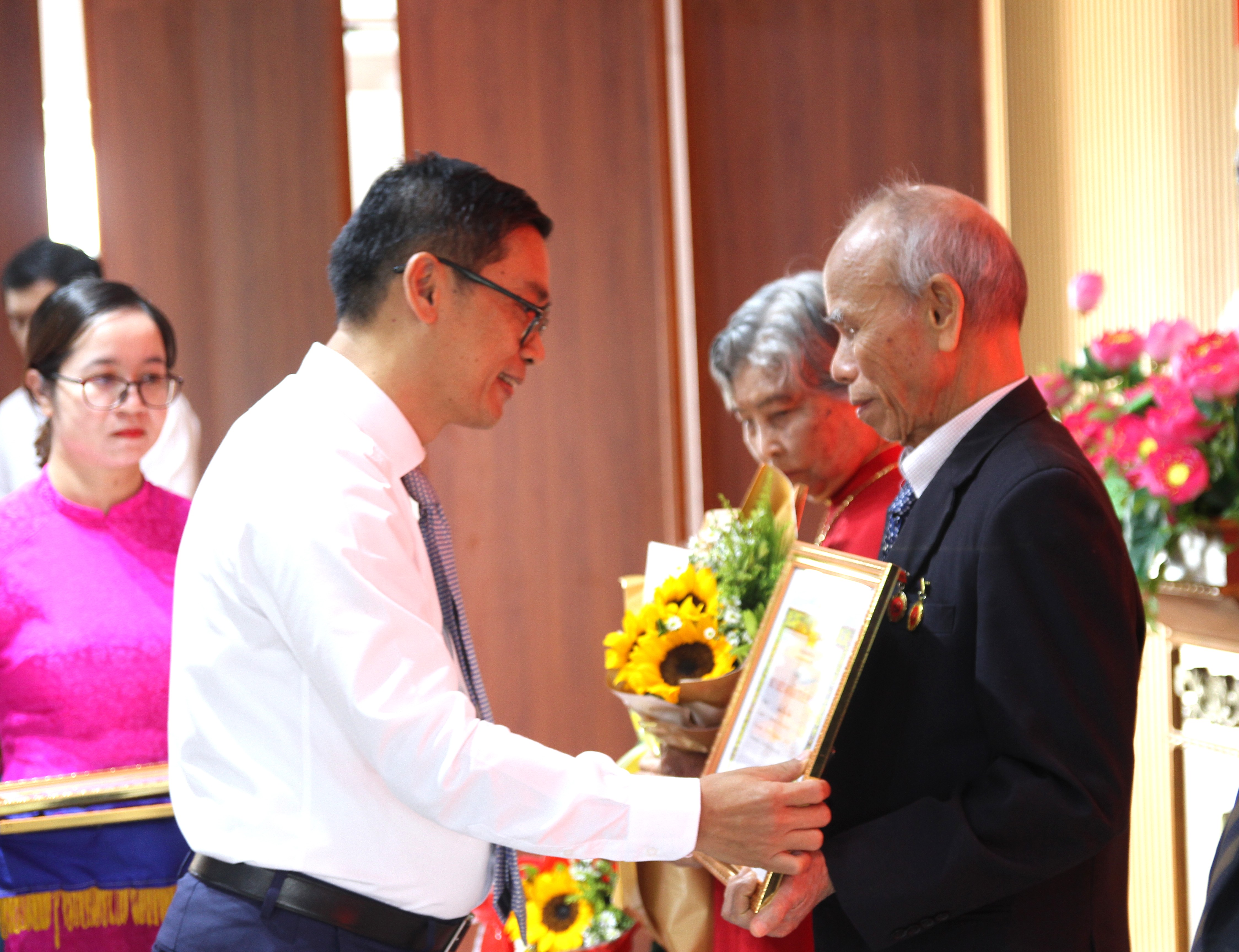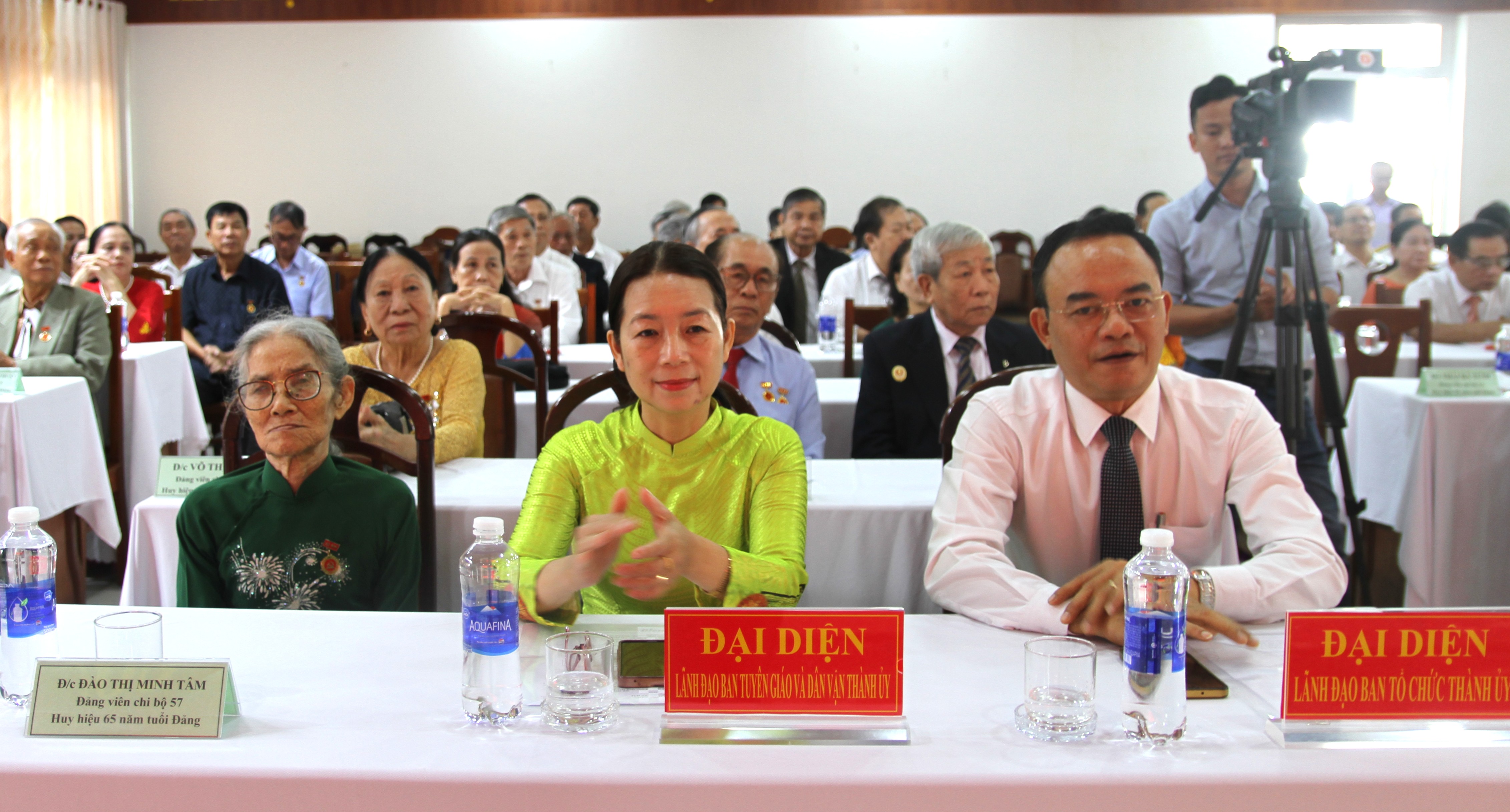 Phát biểu tại buổi lễ, đồng chí Phùng Phú Phong - Bí thư Đảng ủy, Chủ tịch HĐND lâm thời phường chúc mừng, tri ân và ghi nhận những cống hiến to lớn của các đồng chí đảng viên lão thành. Đồng chí khẳng định, đây không chỉ là niềm vinh dự của cá nhân và gia đình, mà còn là niềm tự hào của toàn Đảng bộ, là tấm gương sáng để thế hệ trẻ noi theo. Đồng thời, mong muốn các đảng viên tiếp tục phát huy phẩm chất cách mạng, nêu gương sáng trong cuộc sống, tích cực tham gia xây dựng Đảng và địa phương ngày càng phát triển.