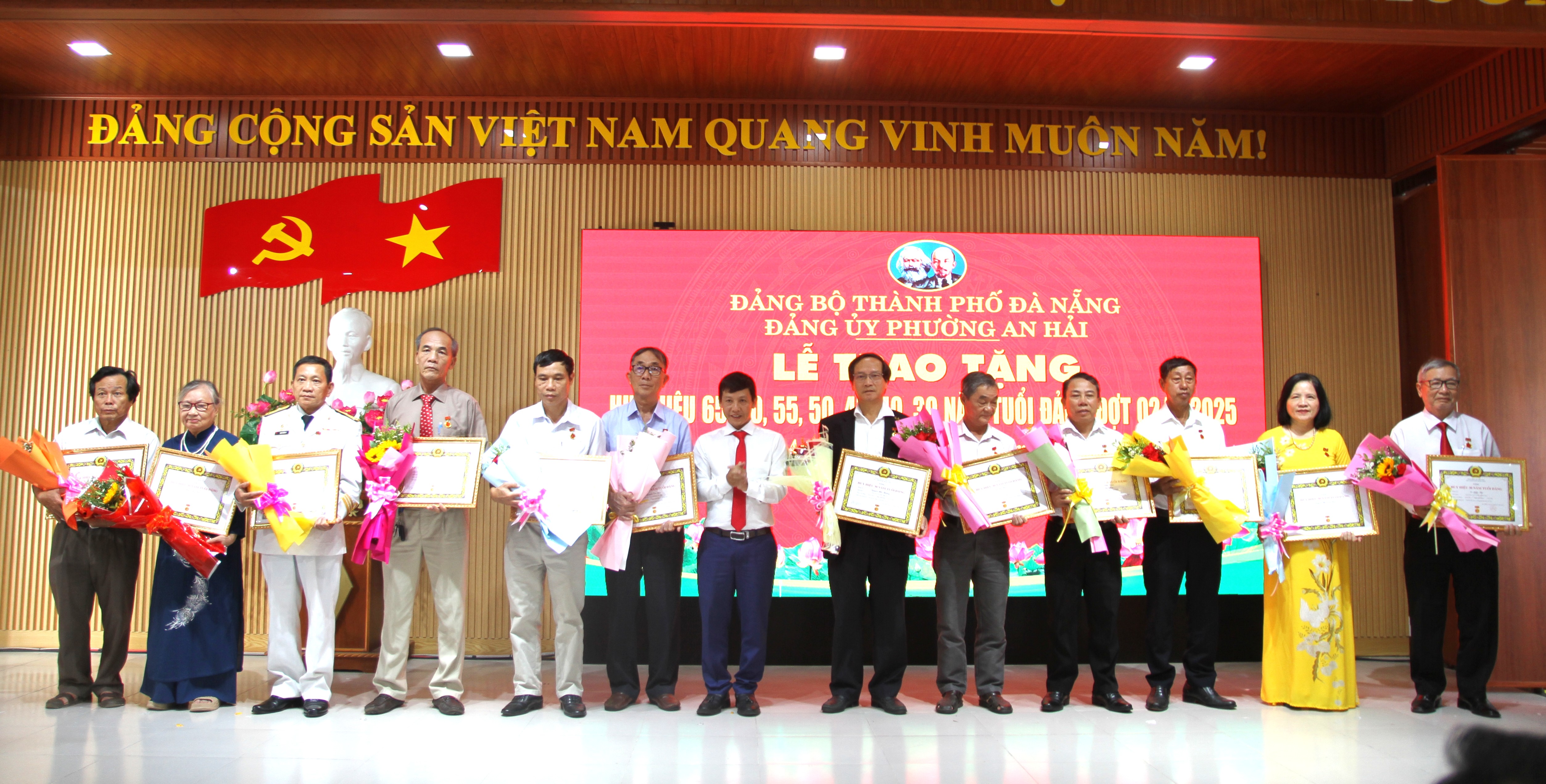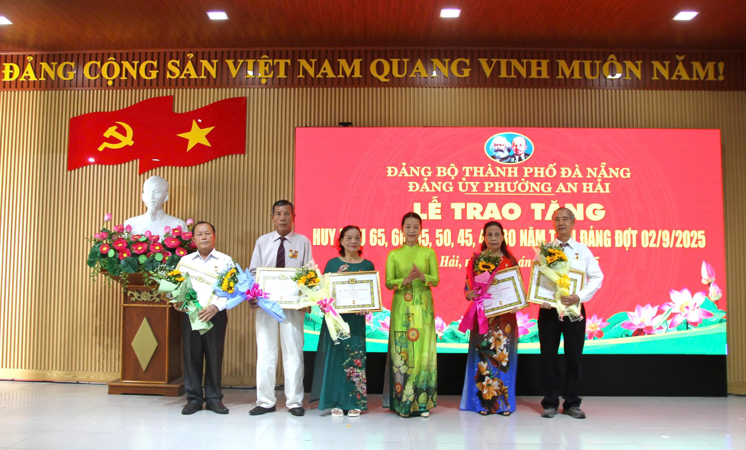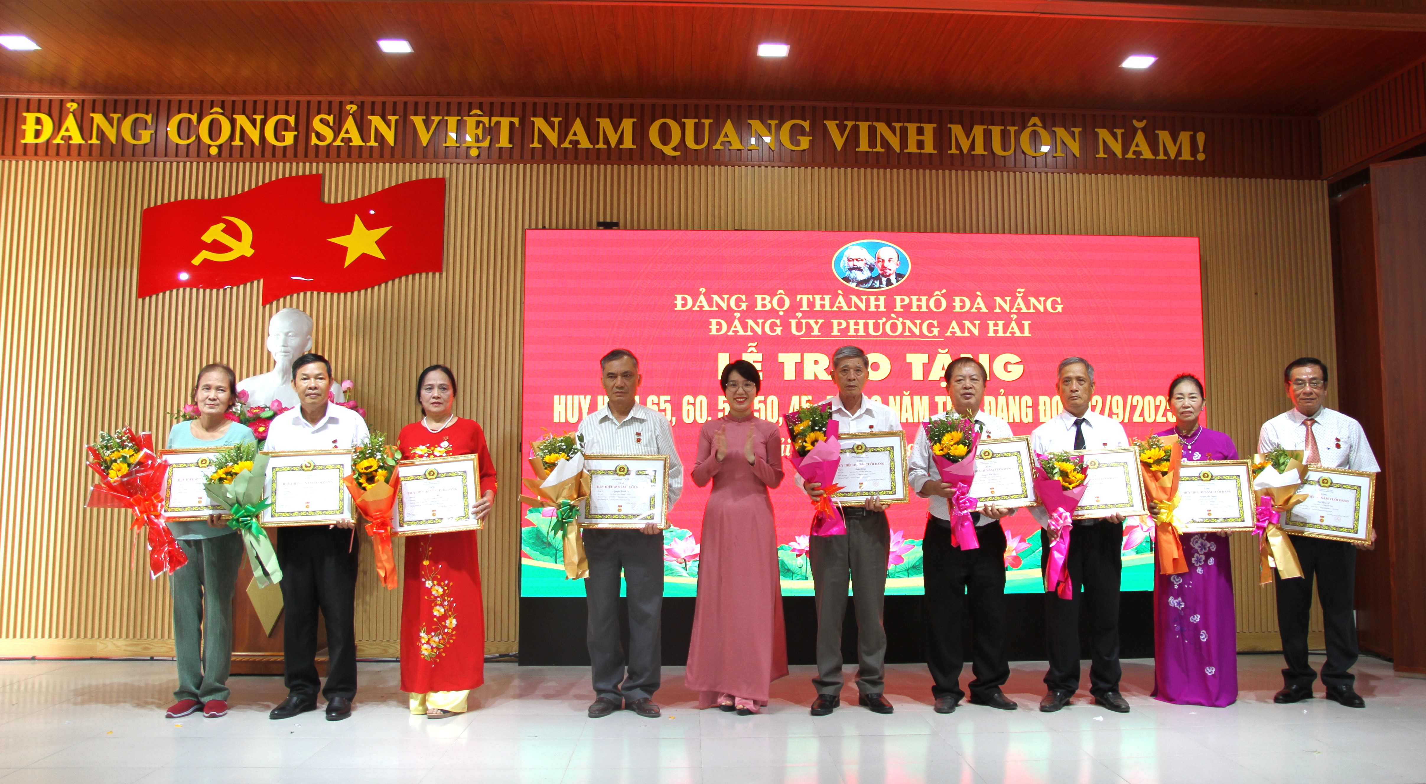 Trong đợt này, Đảng bộ phường An Hải có 89 đồng chí được nhận Huy hiệu Đảng, gồm: 01 đồng chí 80 năm tuổi Đảng, 01 đồng chí 65 năm, 09 đồng chí 60 năm, 10 đồng chí 55 năm, 06 đồng chí 50 năm, 12 đồng chí 45 năm, 24 đồng chí 40 năm và 26 đồng chí 30 năm tuổi Đảng.