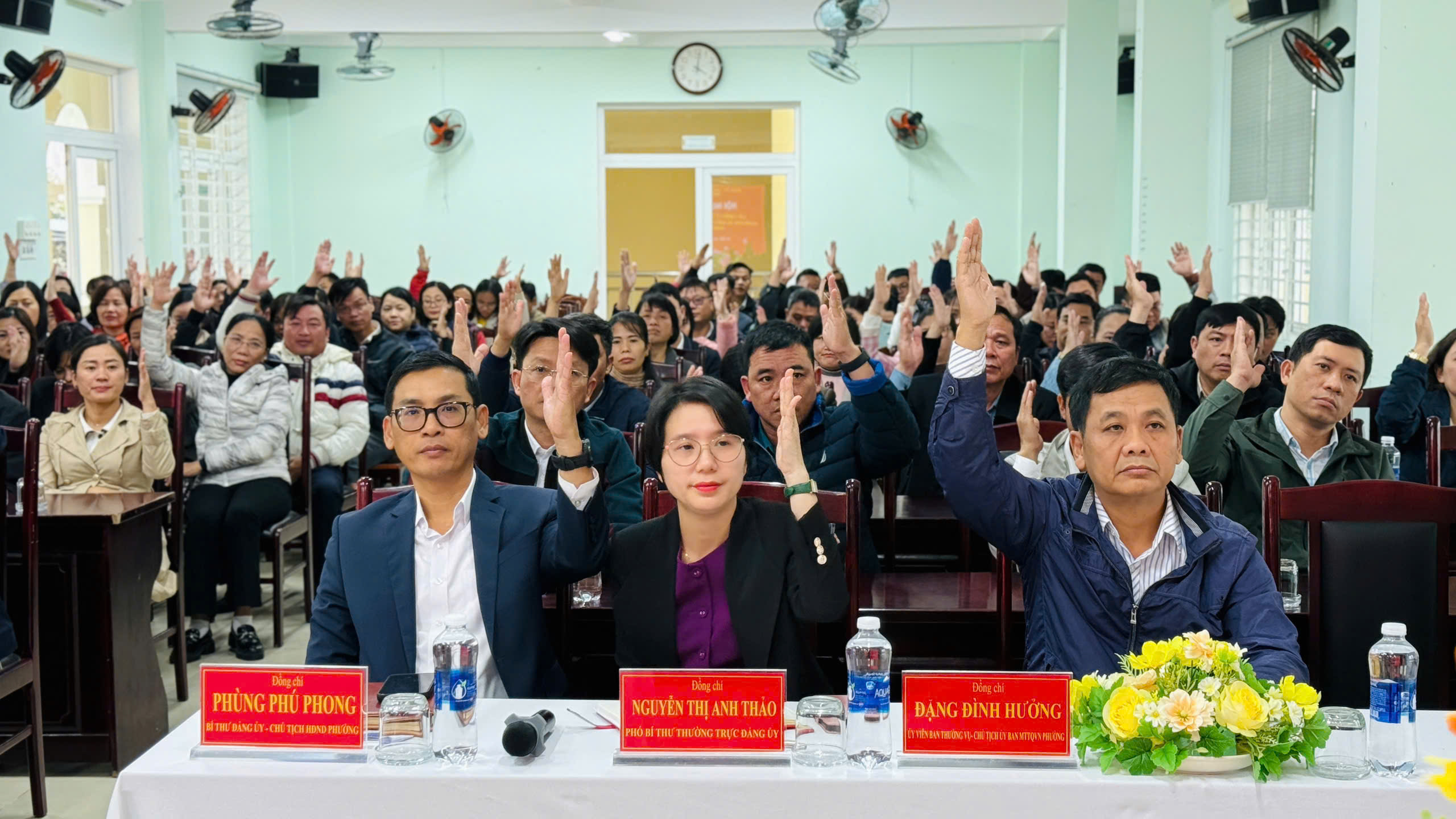 Tại Hội nghị, đã tiến hành các bước lấy ý kiến nhận xét của cử tri, biểu quyết sự tín nhiệm của cử tri đối với 02 trường hợp được giới thiệu ứng cử Đại biểu Hội đồng Nhân dân thành phố Đà Nẵng nhiệm kỳ 2026 - 2031, đó là các đồng chí: Nguyễn Thị Anh Thảo - Phó Bí thư Thường trực Đảng uỷ và Lê Thị Bích Thuận - Đảng ủy viên, Trưởng ban Kinh tế, Ngân sách HĐND phường An Hải.