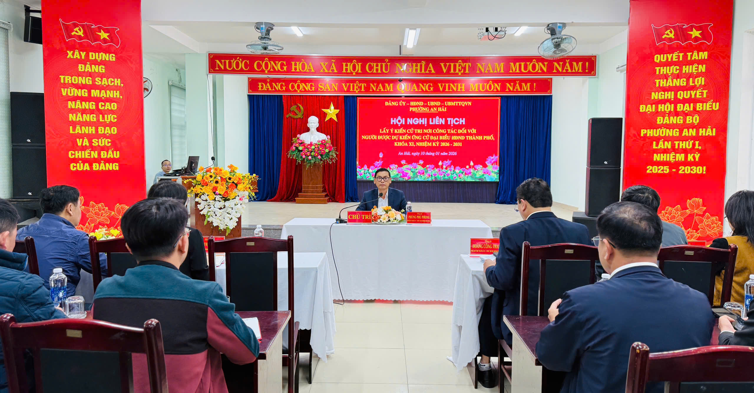 Hội nghị cũng đã giới thiệu danh sách người dự kiến được ứng cử Đại biểu HĐND phường An Hải, nhiệm kỳ 2026 - 2031. Tiến hành các bước về lấy ý kiến nhận xét của cử tri, biểu quyết sự tín nhiệm của cử tri đối với từng người được giới thiệu ứng cử Đại biểu HĐND phường An Hải, nhiệm kỳ 2026 - 2031.