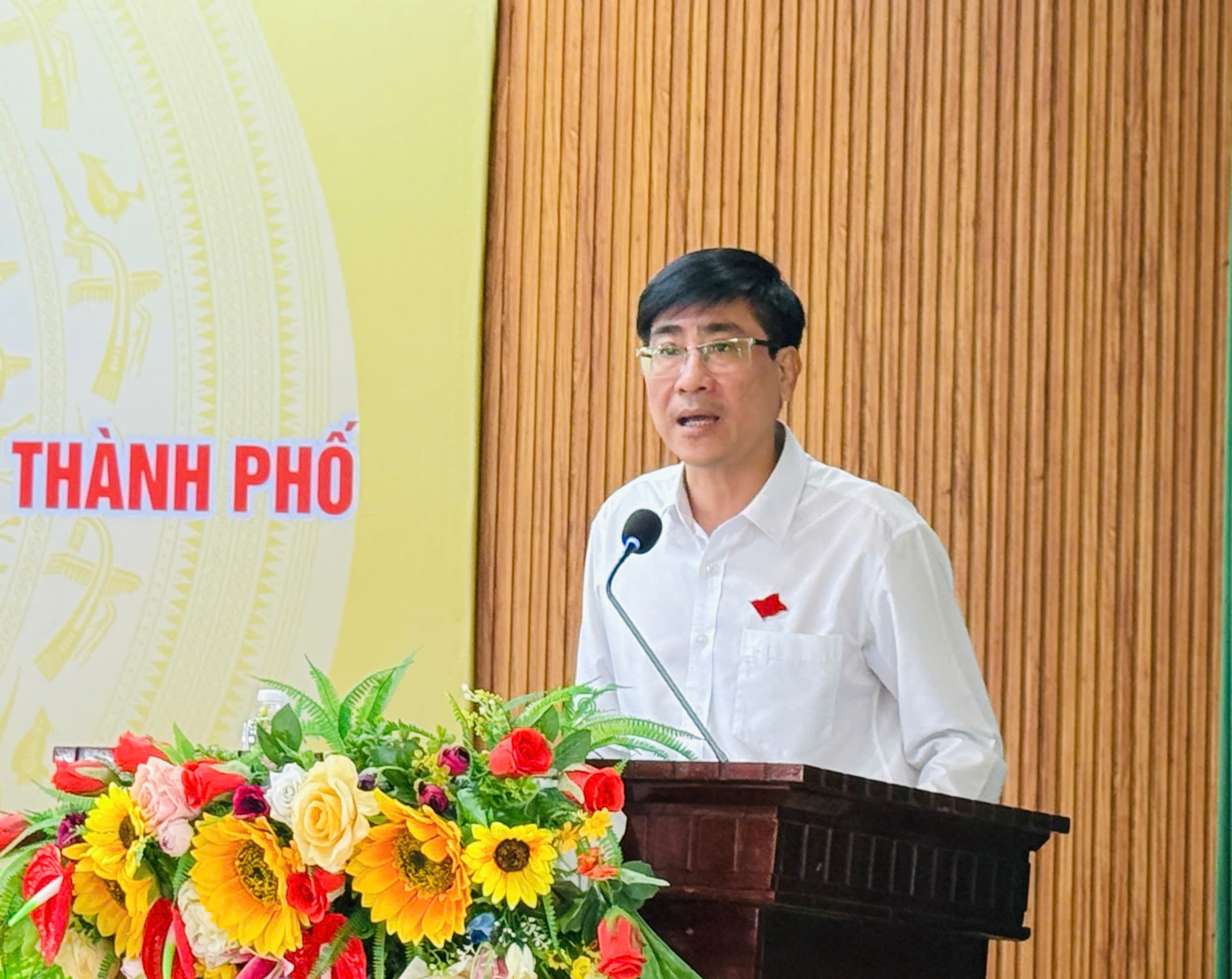 Đại biểu HĐND thành phố Trần Thắng Lợi phát biểu với cử tri