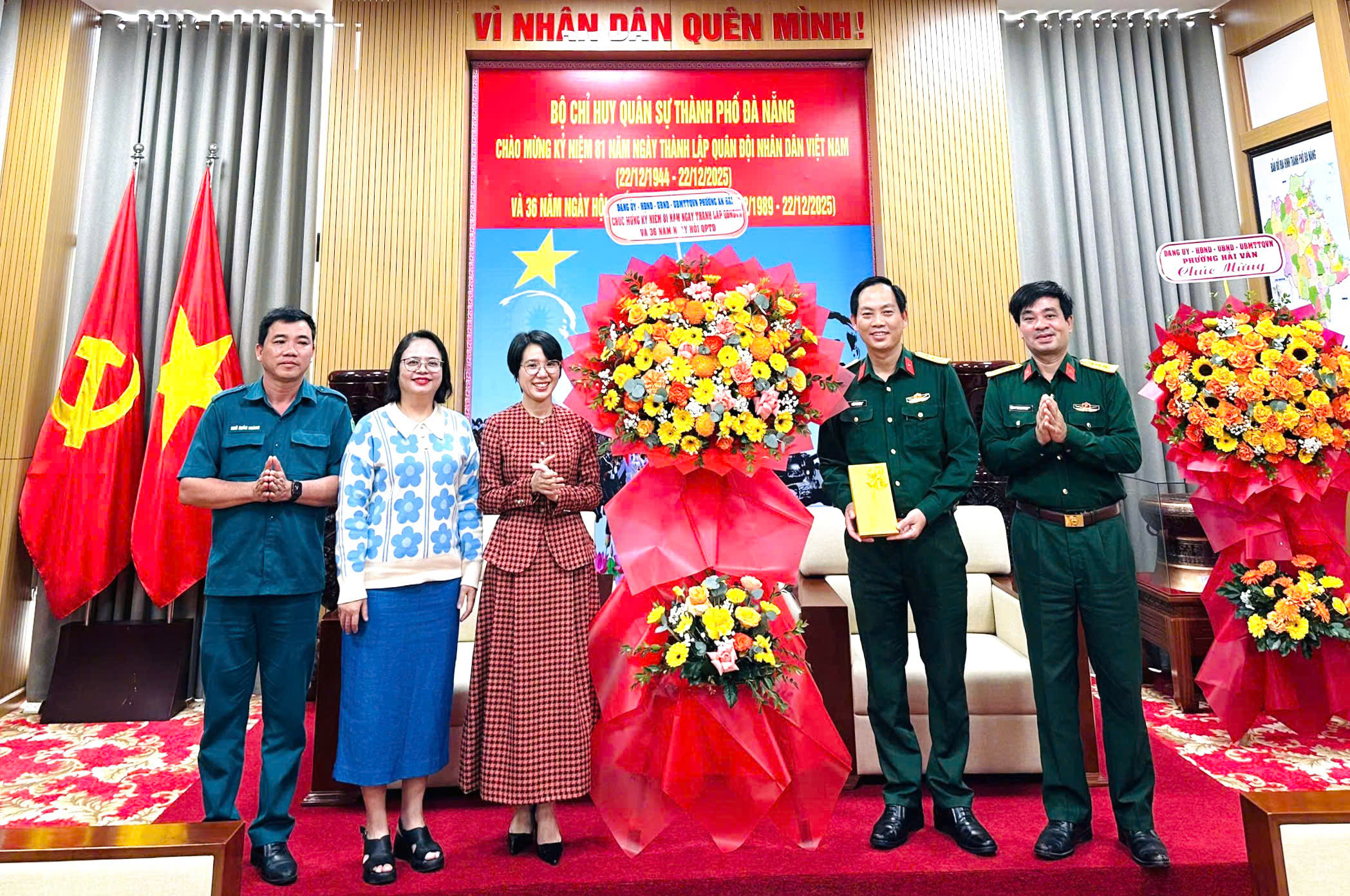 Nhân dịp Kỷ niệm 81 năm Ngày thành lập Quân đội Nhân dân Việt Nam (22/12/1944 - 22/12/2025), 36 năm Ngày hội Quốc phòng toàn dân (22/12/1989 - 22/12/2025), Đảng ủy, HĐND, UBND, Ủy ban MTTQ Việt Nam phường An Hải tổ chức các Đoàn lãnh đạo đến thăm, tặng hoa chúc mừng các đơn vị quân đội tại thành phố Đà Nẵng và trên địa bàn phường.