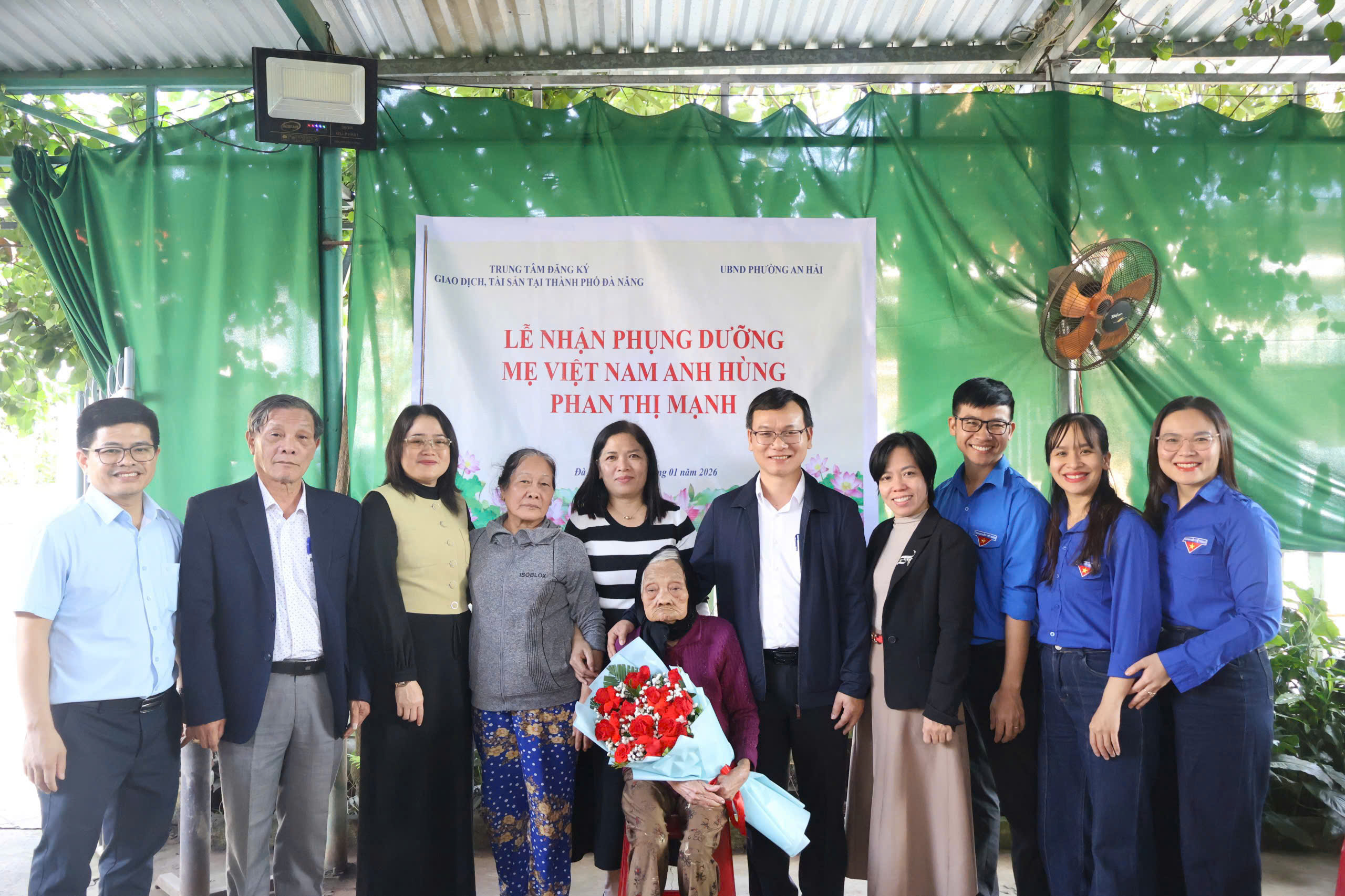 Chiều 11/01, UBND phường An Hải phối hợp với Trung tâm Đăng ký giao dịch, tài sản tại thành phố Đà Nẵng (thuộc Cục Đăng ký giao dịch bảo đảm và Bồi thường Nhà nước - Bộ Tư pháp) tổ chức Lễ Nhận phụng dưỡng Mẹ Việt Nam anh hùng Phan Thị Mạnh.