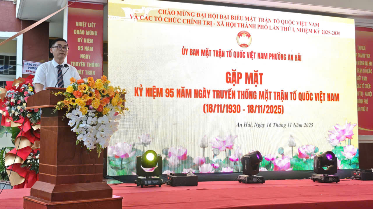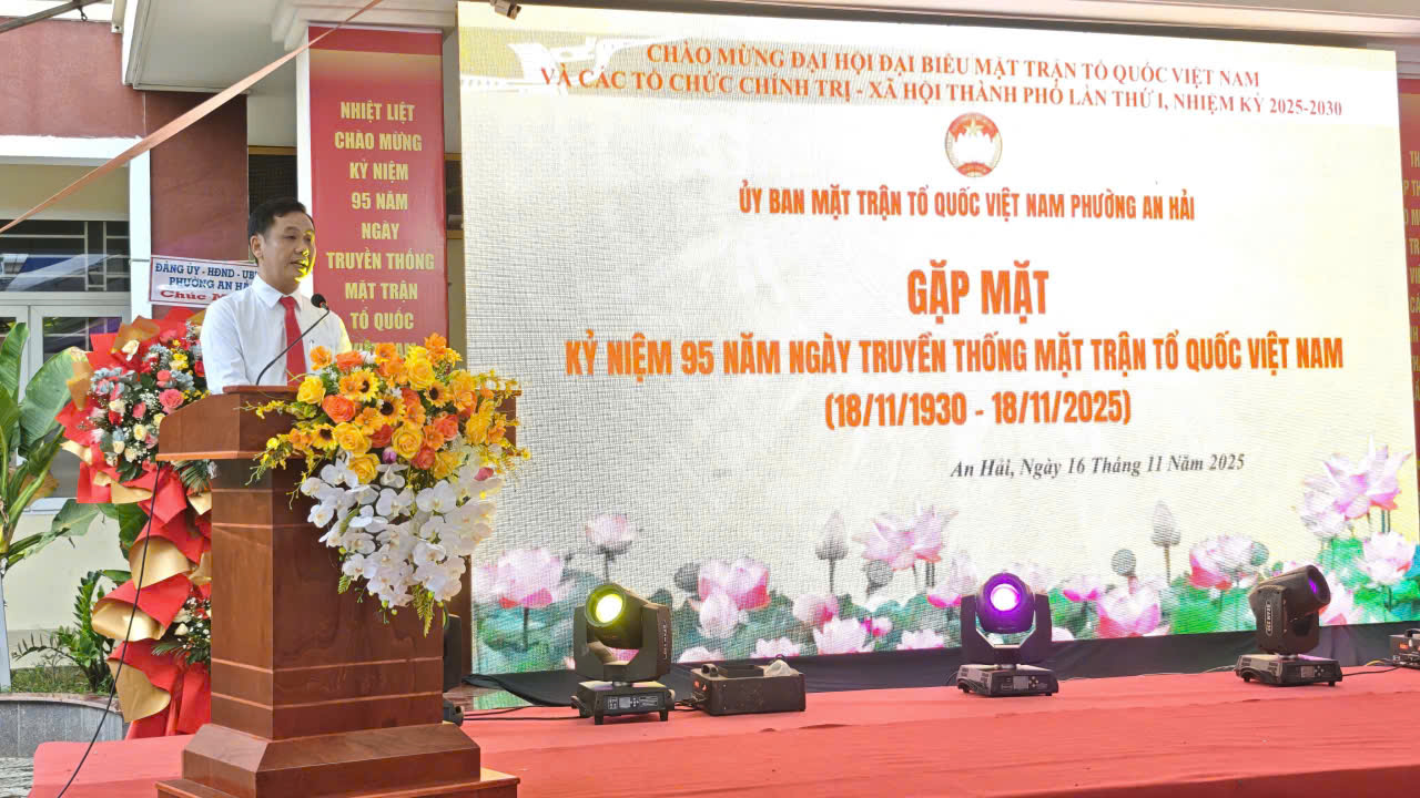 Chiều 16/11, Ủy ban MTTQ Việt Nam phường An Hải long trọng tổ chức Gặp mặt kỷ niệm 95 năm Ngày thành lập Mặt trận Dân tộc thống nhất, Ngày truyền thống MTTQ Việt Nam, Ngày hội Đại đoàn kết toàn dân tộc, ôn lại truyền thống vẻ vang của Mặt trận Tổ quốc Việt Nam qua 95 năm xây dựng và phát triển.