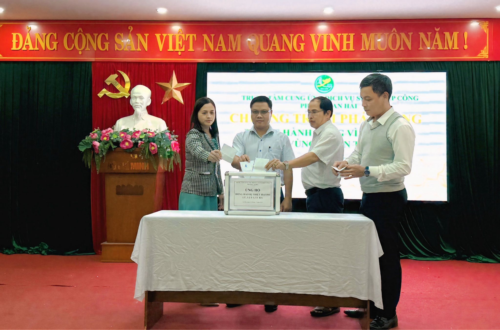 Vào chiều 26/7, Trung tâm cung ứng dịch vụ sự nghiệp công phường An Hải tổ chức Chương trình Phát động Tháng hành động vì Nhân dân vùng thiên tai. Theo đó, hưởng ứng Thư kêu gọi của Ban Thường trực Uỷ ban MTTQ Việt Nam phường An Hải, Ban Giám đốc Trung tâm cung ứng dịch vụ sự nghiệp công phường phát động, kêu gọi mỗi cán bộ, viên chức, người lao động trong đơn vị tuỳ tâm, đóng góp kinh phí, góp phần hỗ trợ Nhân dân những vùng bị thiệt hại nặng nề bởi thiên tai thời gian qua.
